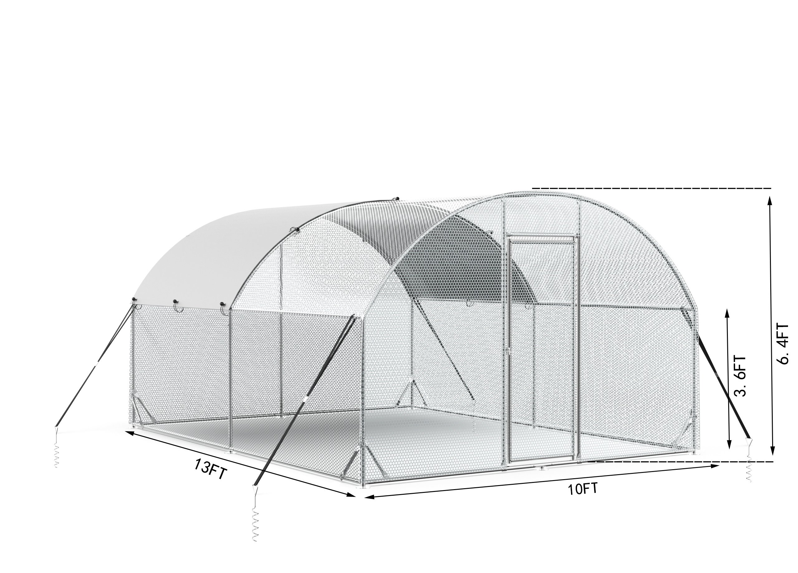 Durable galvanized frame construction-Our chicken coop (10'W x 13'L x 6.4'H) is made of sturdy stainless steel for long-term outdoor use, and we have added two additional triangular struts to each base for an extra layer of protection.