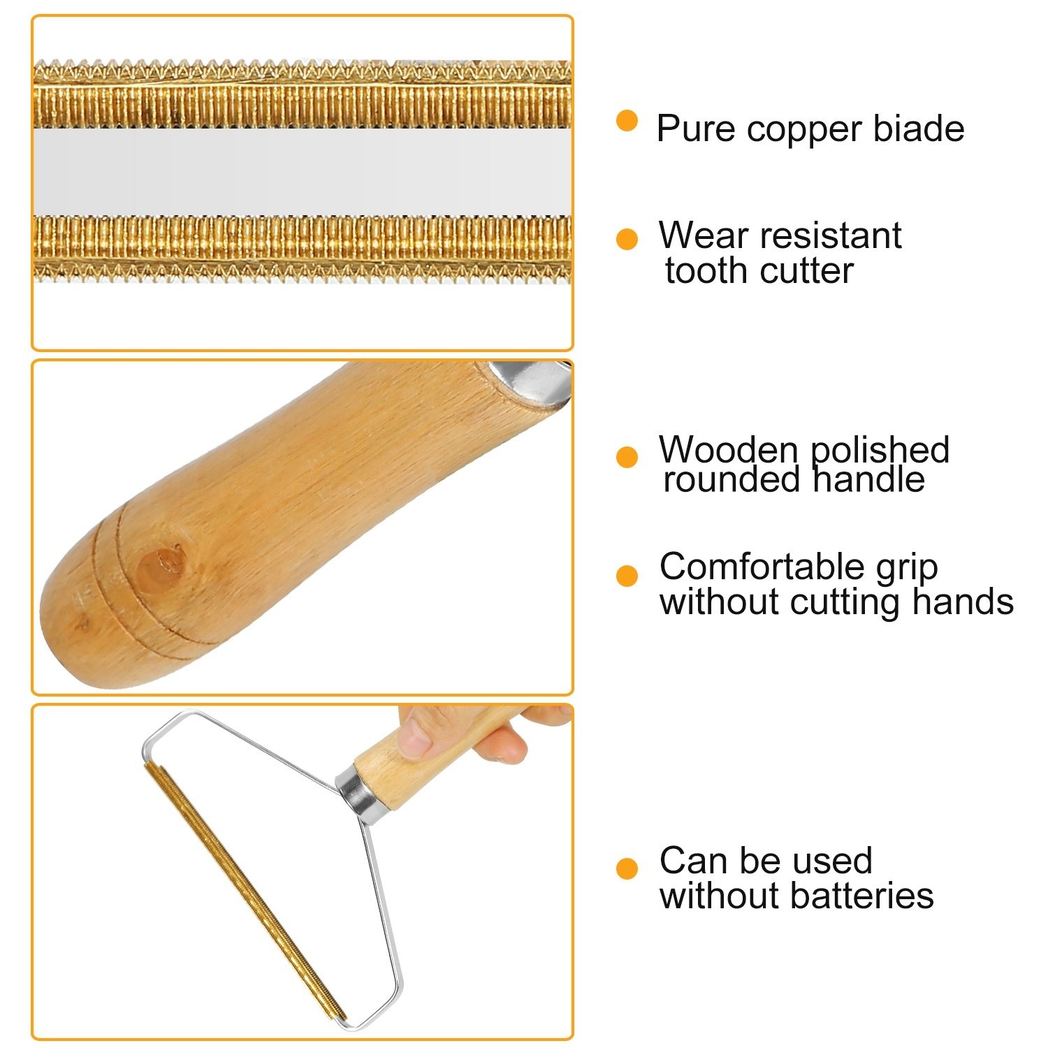 **[Premium Material]*:Manual Clothes Fuzz Shaver is made of pure copper; to ensure a long service time. Adopted with beech handle which is very durability and environmental protection.