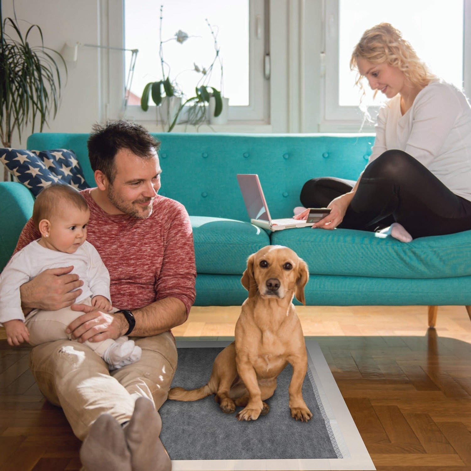 B) Familiarize The Pee Pad:Please gently guide your lovely dog to sniff the charcoal pads for dogs several times in order to familiar with the smell of the pads. If your pet begins to go potty; please take him to where the puppy pad is.