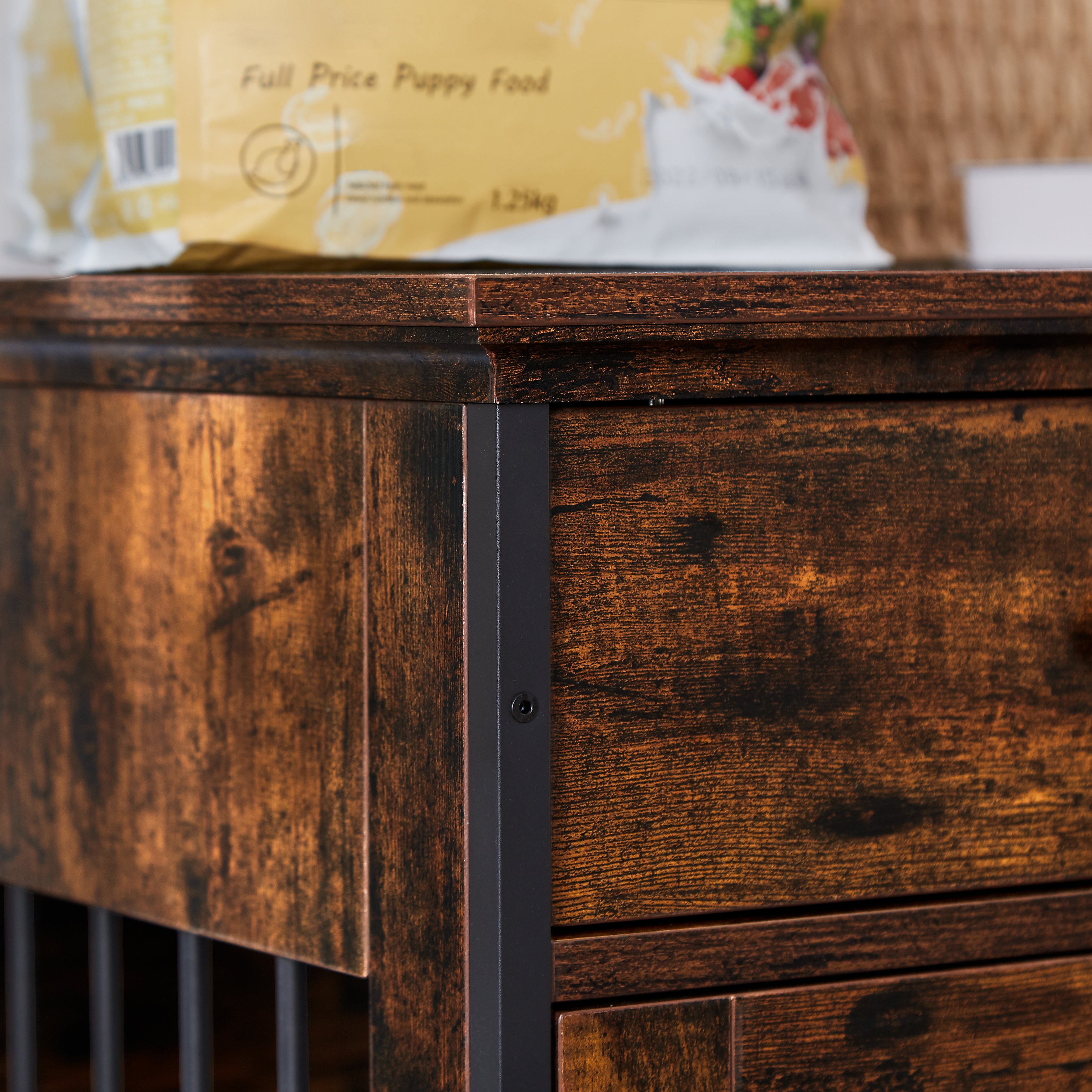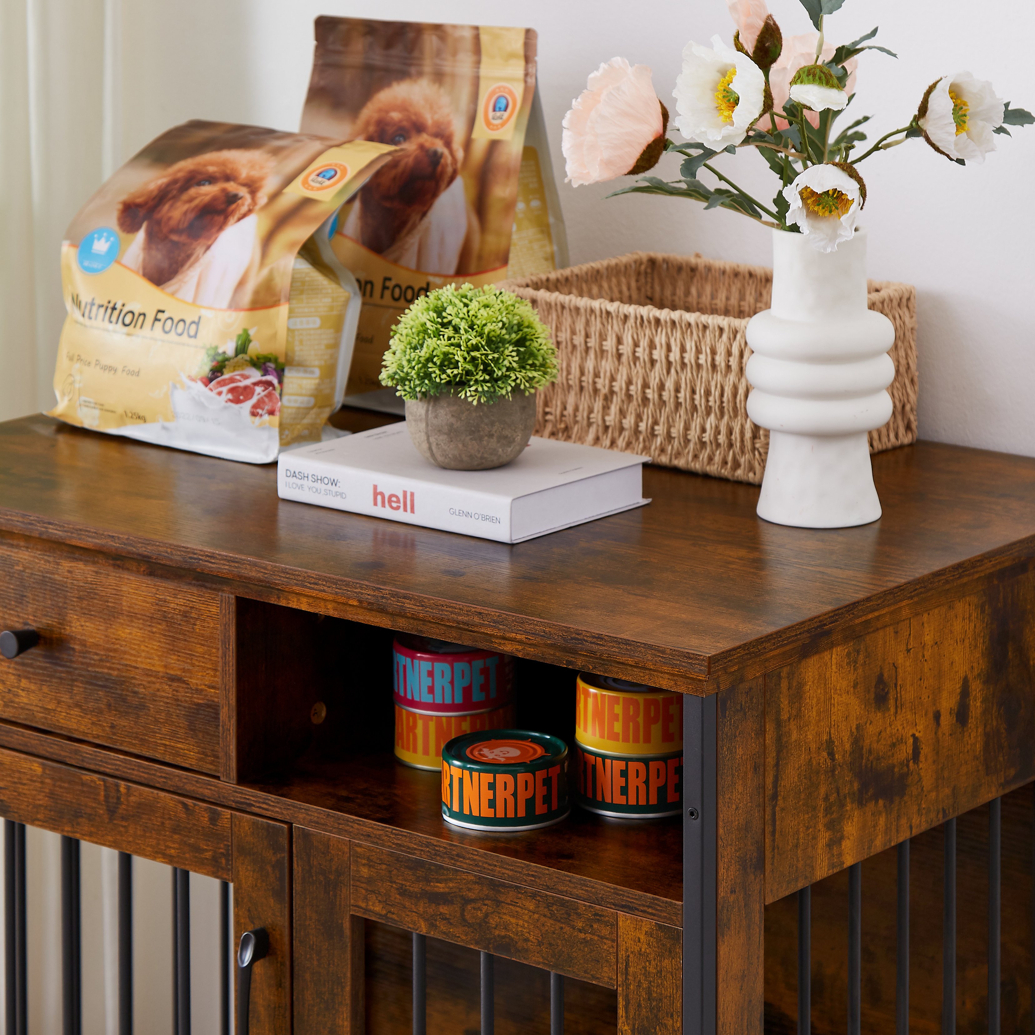 2.The upper part of the crate has 2 compartments, you can choose to put the drawer on the left or right, which is a good place to store dog food and dog toys