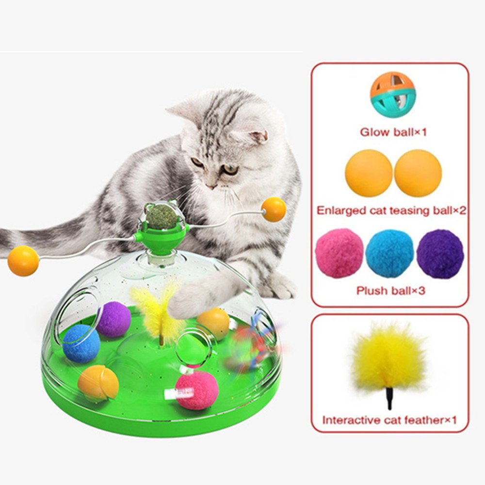 Interactive Cat Toy Ball Pets Cats Puzzle Spinning Track with Plush Balls Feather Teaser Kitten Toys Game Catnip Ball Toy